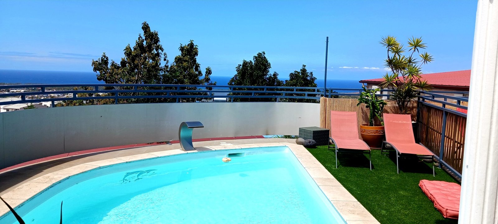 Vue mer, Littoral et piscine en bord de varangue.